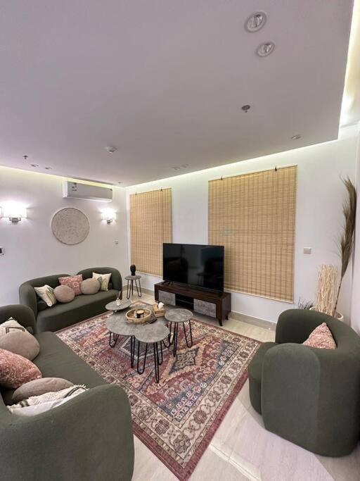 توفر هذه الشقة غرفة نوم واحدة وتلفزيون بشاشة مسطحة مع قنوات فضائية ومطبخ مجهز بميكروويف وثلاجة وغسالة ملابس وحمّامين مزودين بدش، كما تتوفر المناشف وبياضات الأسرّة.
