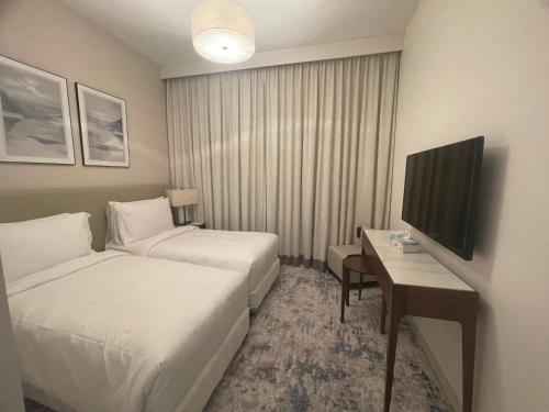 Offering a balcony and garden views, the spacious apartment includes 2 bedrooms, a living room, satellite flat-screen TV, an equipped kitchen, and 1 bathroom with a bath and a shower. Guests can enjoy a meal on an outdoor dining area while overlooking the city views.